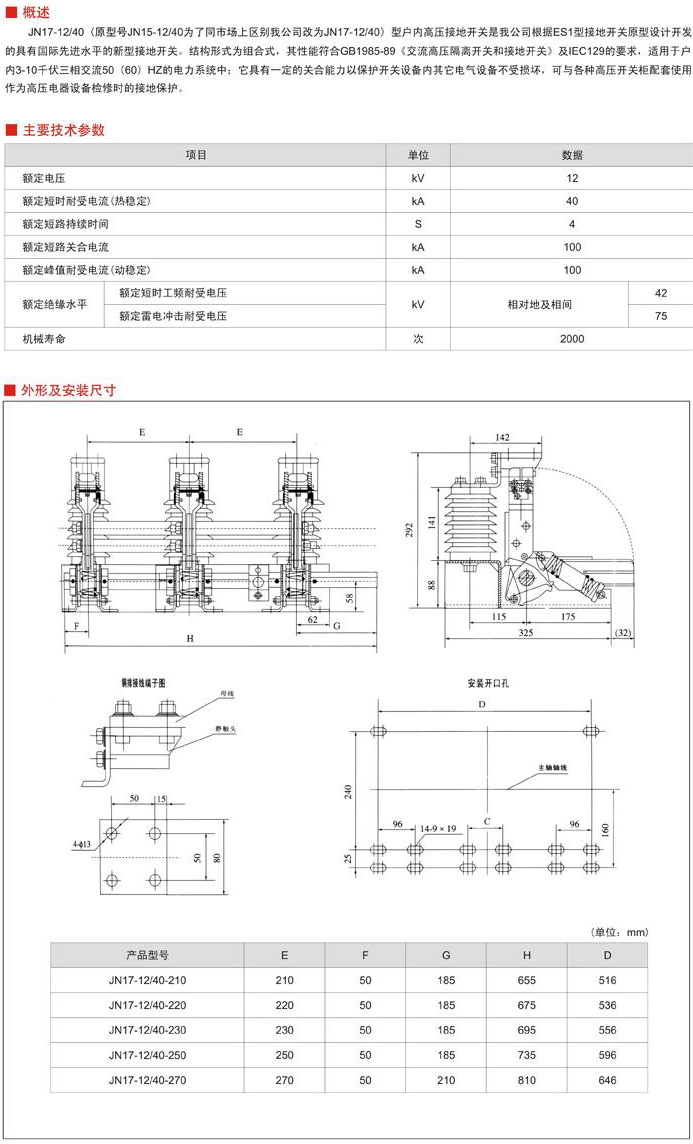 JN17-12/40系列戶內高壓接地開關